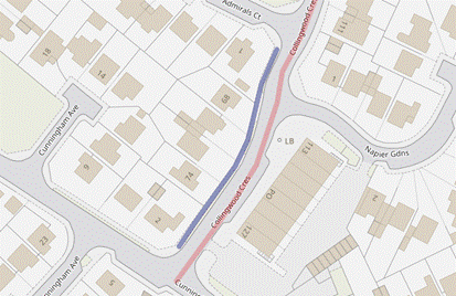 Then from Collingwood Crescent from side of number 2 Cunningham Avenue to side of number 1 Admirals Court.