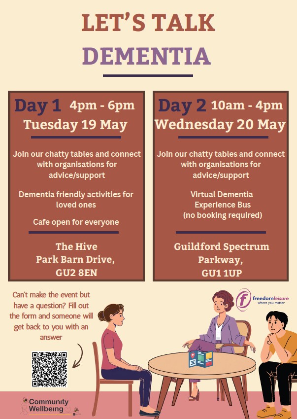 The 2nd event is being held at Spectrum, from 10am until 4pm as the Virtual Dementia Experience bus will be on site for people to go into and the chatty tables them will be held inside, with 3 attendance slots for organisations.