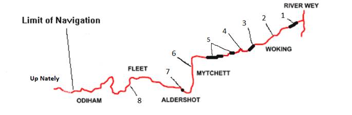 | 5 | Brookwood and Deepcut Locks (Locks 12 – 28) | CLOSED – water shortage, ongoing |
